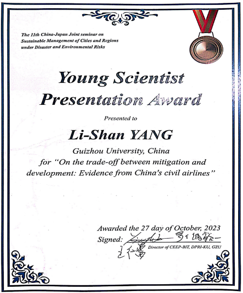 此次会议根据论文选题、演讲能力、报告内容和问题回答等四个方面,对全体参会学生的学术报告进行了评估,对其中优秀者颁发青年科学家最佳论文奖。其中,乐动官方网站博士生孙昕荣获一等奖,硕士生邹紫莹荣获二等奖,硕士生杨莉杉、贾婷文荣获三等奖。