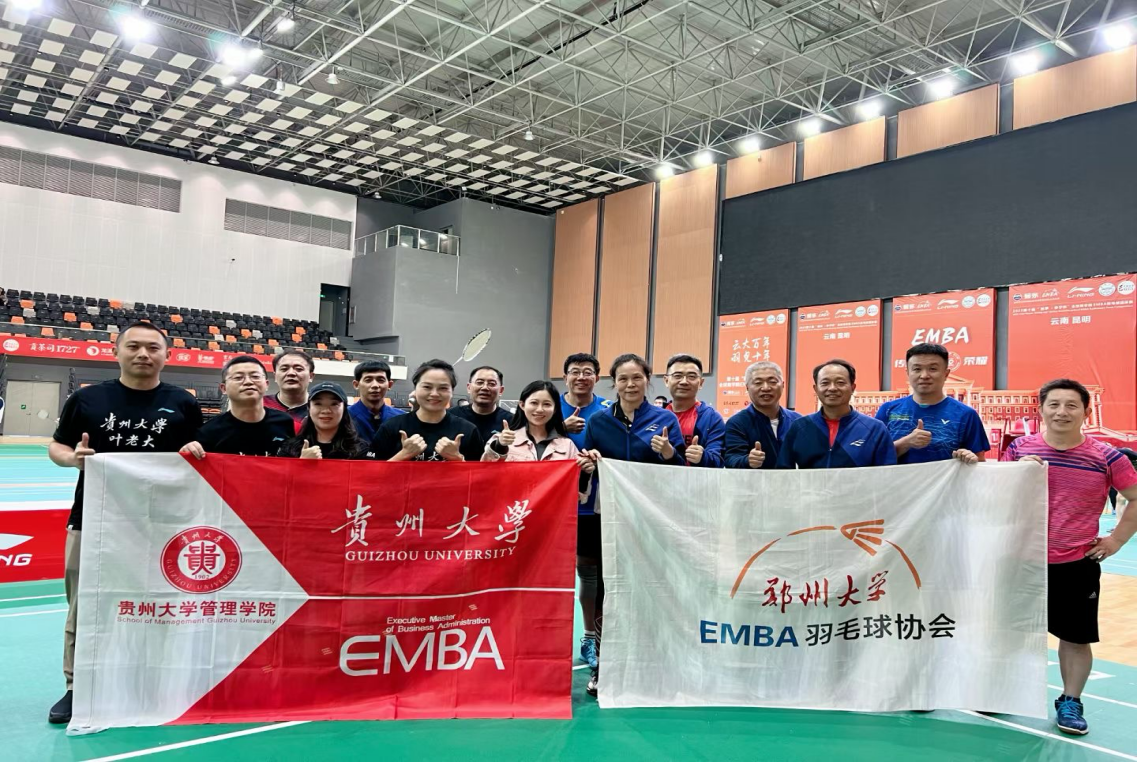 贵州大学大学管理学院EMBA校友组成的“贵州大学EMBA叶老大羽毛球队”先后与中欧商学院、厦门大学、紫荆博雅(香港城市大学/北京大学联队)、对外经贸大学、清华大学、郑州大学六支EMBA羽毛球队团体比赛,取得三胜三负的成绩,在学员常规组获得第十届全球商学院EMBA羽毛球团体赛第25名的好成绩。同时获得单项比赛90+混双(关承胤/钱柳睿)季军、男双100+(蒋元伟/胡文)第11名、青年混双(申霖/詹燕茹)第11名的成绩。