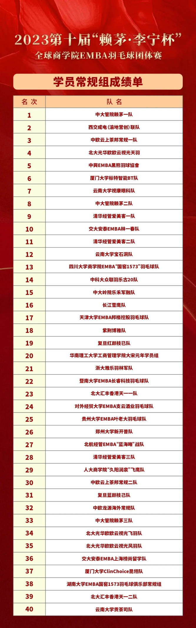 展望未来,期待更多的校友加入乐动官方网站EMBA羽毛球队,共享体育带来的快乐,为管理学院的体育文化注入新的活力;期待管理学院EMBA羽毛球队在未来的比赛中继续创造辉煌。