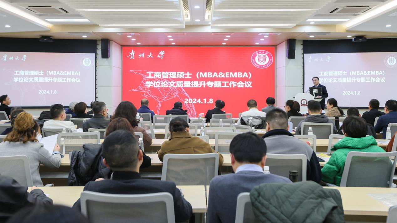 贵州大学研究生院学位管理科科长杨玥出席了本次会议,杨科长介绍了贵州大学近三年学位论文抽检的情况,并解读了《贵州大学研究生学位论文抽检结果处理办法》,还通报了学校2023年工商管理硕士(MBA&EMBA)学位论文的盲评情况。