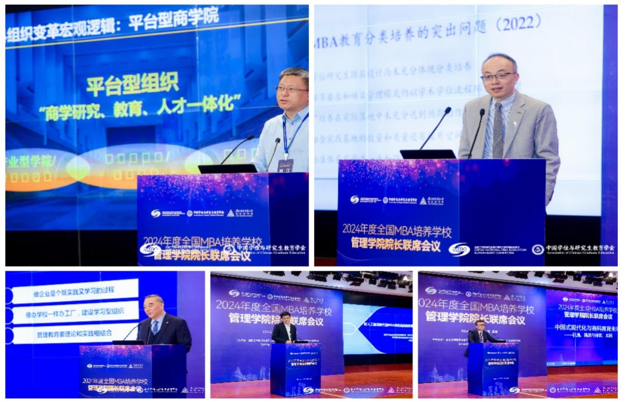 下午,“中国式现代化与商科教育未来—机遇、挑战与实践、探索”主题论坛由全国MBA教指委委员、兰州大学管理学院院长何文盛教授主持,全国MBA教指委委员、浙江大学管理学院常务副院长谢小云教授分享了“新时代MBA教育论文评价体系构建暨《工商管理专业学位类别硕士学位论文基本要求》解读”,对相关政策进行了详细解读和思考、清华大学经济管理学院党委书记陈煜波教授、华中科技大学管理学院院长杨治教授,同济大学经济与管理学院副院长谢恩教授,全国MBA教指委委员、对外经济贸易大学国际商学院院长陈德球教授分别从新人工智能时代MBA教育高质量发展、MBA产教融合、分类培养视角下的MBA教育体系以及管理案例生态建设等主题进行了分享。