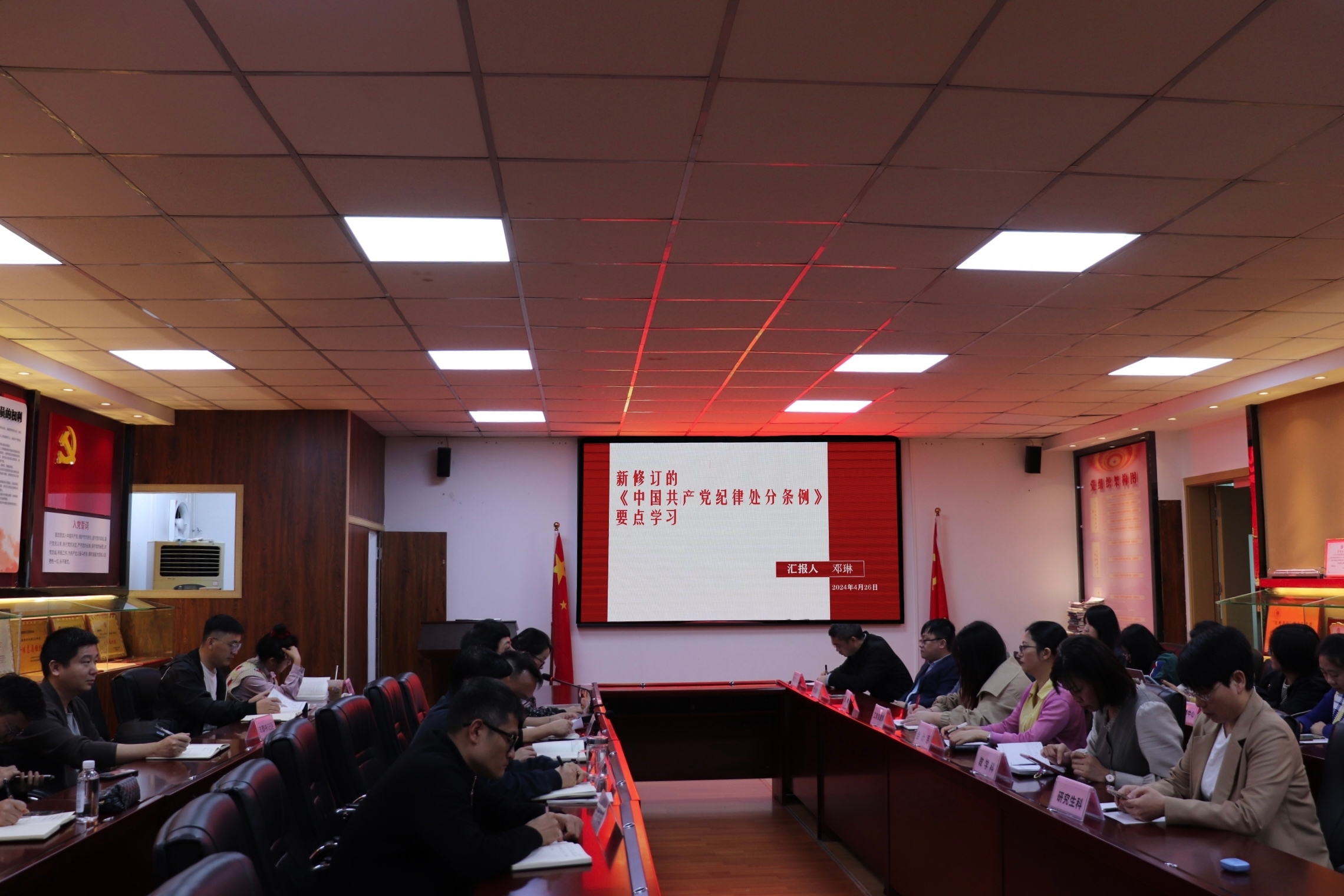 426日,乐动官方网站组织召开党纪学习教育读书班学习暨专题辅导会,参加本次会议的有乐动官方网站党政领导、全体中层干部及各党支部书记。会议由院党委副书记兼纪委书记邓琳主持。本次读书班旨在深入贯彻落实党中央关于加强党的纪律建设的要求,引导全体党员、干部学纪、知纪、明纪、守纪进一步强化纪律意识,推动全面从严治党向纵深发展。