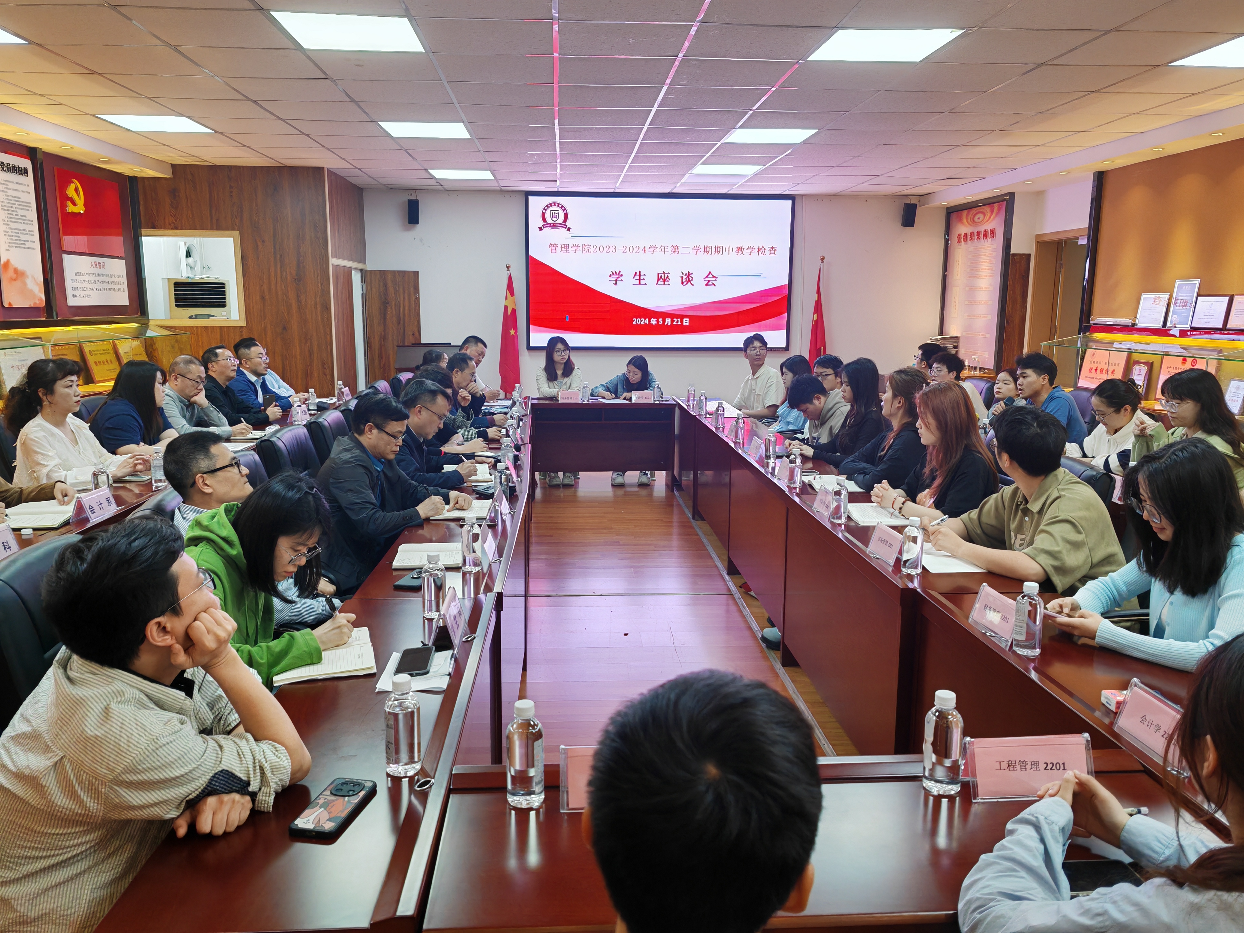 2024年5月21日,乐动官方网站在三楼陈列室召开了2023-2024学年第二学期本科期中教学检查学生座谈会。会议由管理学院分管本科教学的李本光副院长(正处级)主持,管理学院院长李烨教授、贵州大学党委正处级组织员、管理学院党委副书记(主持党委工作)周莉莉教授、管理学院党委副书记邓琳老师、管理学院副院长许为宾教授、各系主任、副主任、教学科、学生科全体老师、院督导组代表及2020级、2021级、2022级各班学生代表参加座谈会。