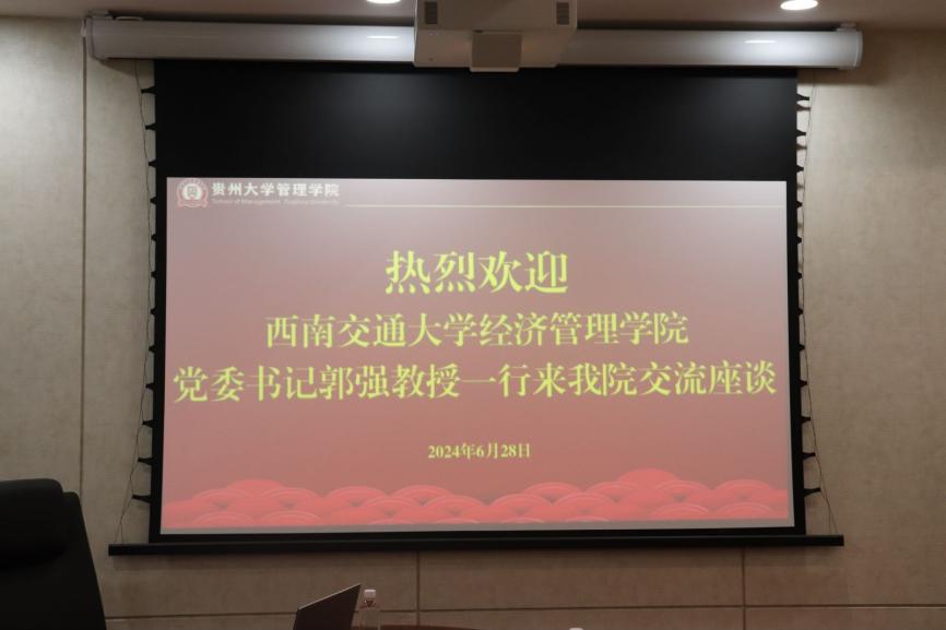 2024年6月28日,西南交通大学经济管理学院党委书记郭强教授及其团队成员来我院调研交流。管理学院院长李烨教授及相关部门负责人参与座谈。此次座谈旨在分享管理经验,探讨合作形式,共同推动两院管理学科的进一步发展。
