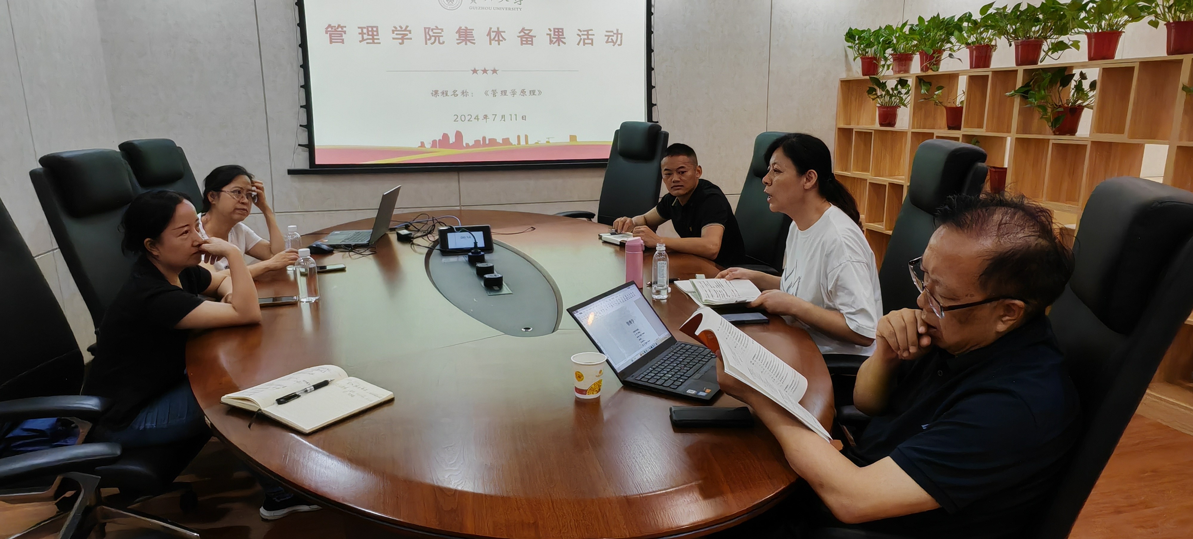 为了提高教师备课效果和教学水平,更好地凝聚集体智慧,助力高效化课堂,提高教育教学的质量,2024年7月11日上午,乐动官方网站《管理学原理》课程组在管理学院三楼304会议室开展集体备课活动,参加人员有管理学院分管本科教学的副院长(正处级)李本光教授、管理学院原党委书记王秀峰教授以及学院承担《管理学原理》课程的徐丹副教授、刘江花副教授、刘洁琼博士和钟健博士。