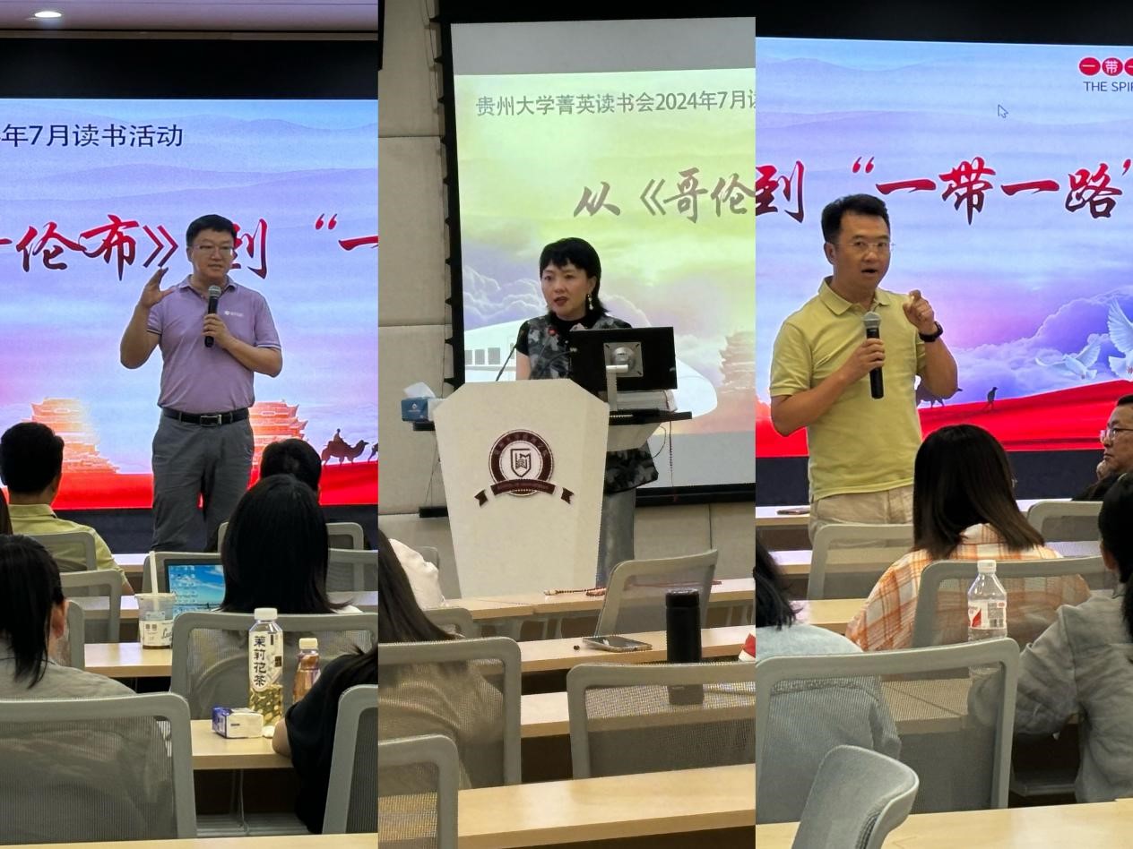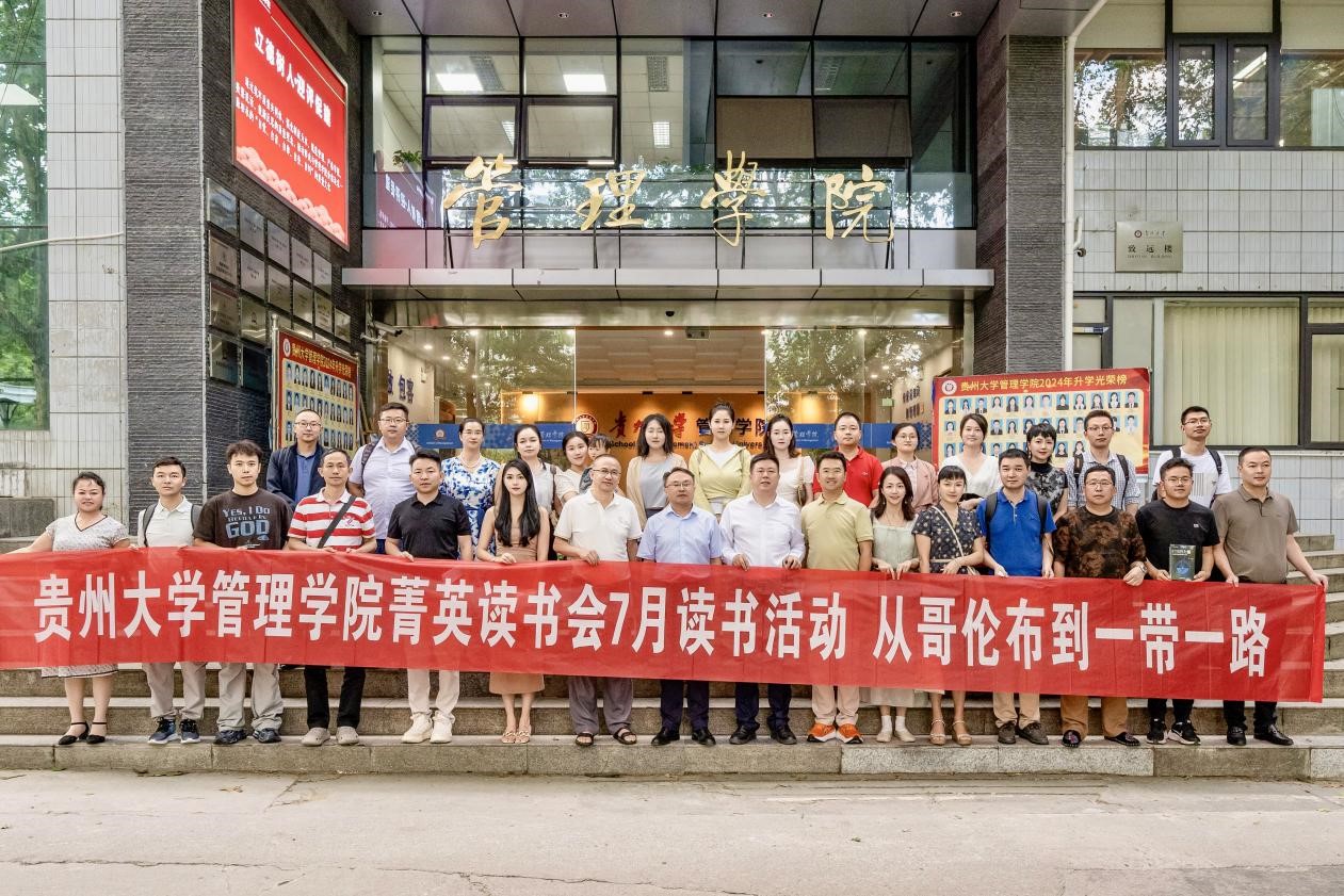2024年7月6日,贵州大学管理学(EMBA&MBA&EDP)菁英读书会在管理学院三楼报告厅举办了主题为从《哥伦布》到“一带一路”的读书活动。本期读书由EMBA校友罗纲举(贵阳方舟科技有限公司总经理、读书会荣誉会长)分享。活动以现场分享、互动提问的方式让来自读书会和学院在读的MBA约40多名校友、同学参与到本次活动当中。贵州大学党委委员、乐动官方网站院长李烨出席了活动。活动主持人为读书会会长吴迪、读书会联合会长陈隽宁。
