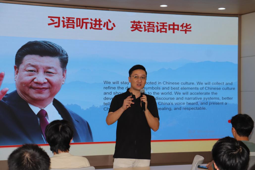 最后,沈麟教授以“习语听进心,英语话中华”为结语,引用习近平总书记的讲话,指出“新时代的中国青年,要以实现中华民族伟大复兴为己任增强做中国人的志气,骨气,底气。”激励同学们努力学好外语,结合国家需求,讲好中国故事,展示大国风采,传播中华文化。