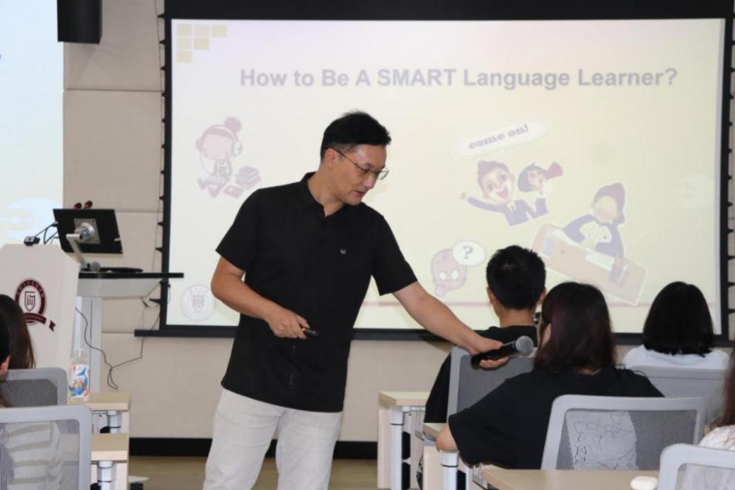 沈麟教授分为“听说训练”和“读写译训练”两大板块展开外语学习的方法。在“听说训练”板块中,沈麟教授指出同学们目前存在的三个误区,即“国外的学习环境”“从慢到快的学习语速”“昂贵的学习资源”。他强调同学们应该遵循内在的语言环境,按照日常的语速学习外语,不必追求昂贵的学习资源,端正学习态度,通过自己的努力学好外语。沈麟教授讲述自己和美国孔院(中文项目)的故事,为同学们展示他与外国学生学习交流,传播中华文化,吸引外国学生来到中国交流学习的经历。
