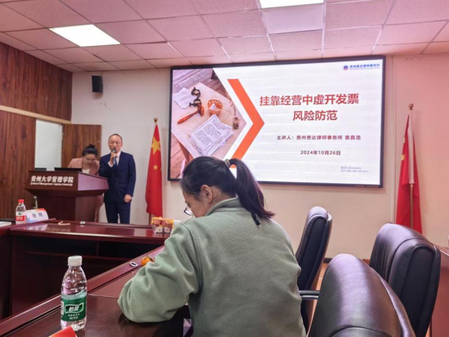 贵州省资深税务律师袁昌浩进行了题为《挂靠经营中虚开发票风险防范》的分享。他深入剖析了近年来税务机关在打击虚开发票行为方面的政策动态,尤其是对挂靠经营中虚开行为的新规定做了详细讲解,并强调了遵守税务合规的必要性。