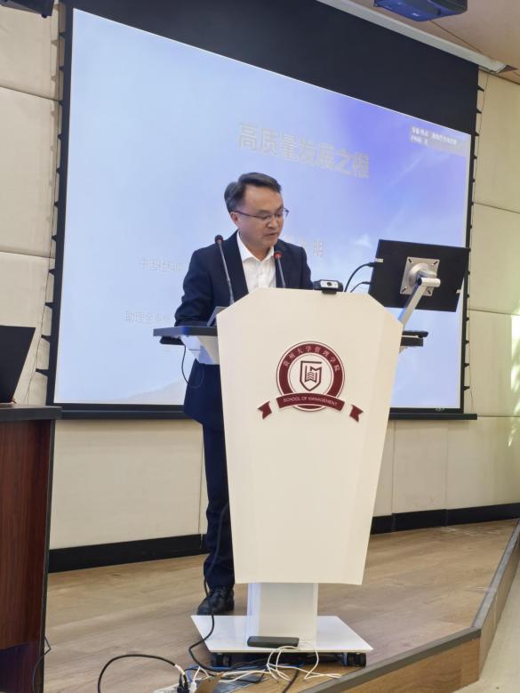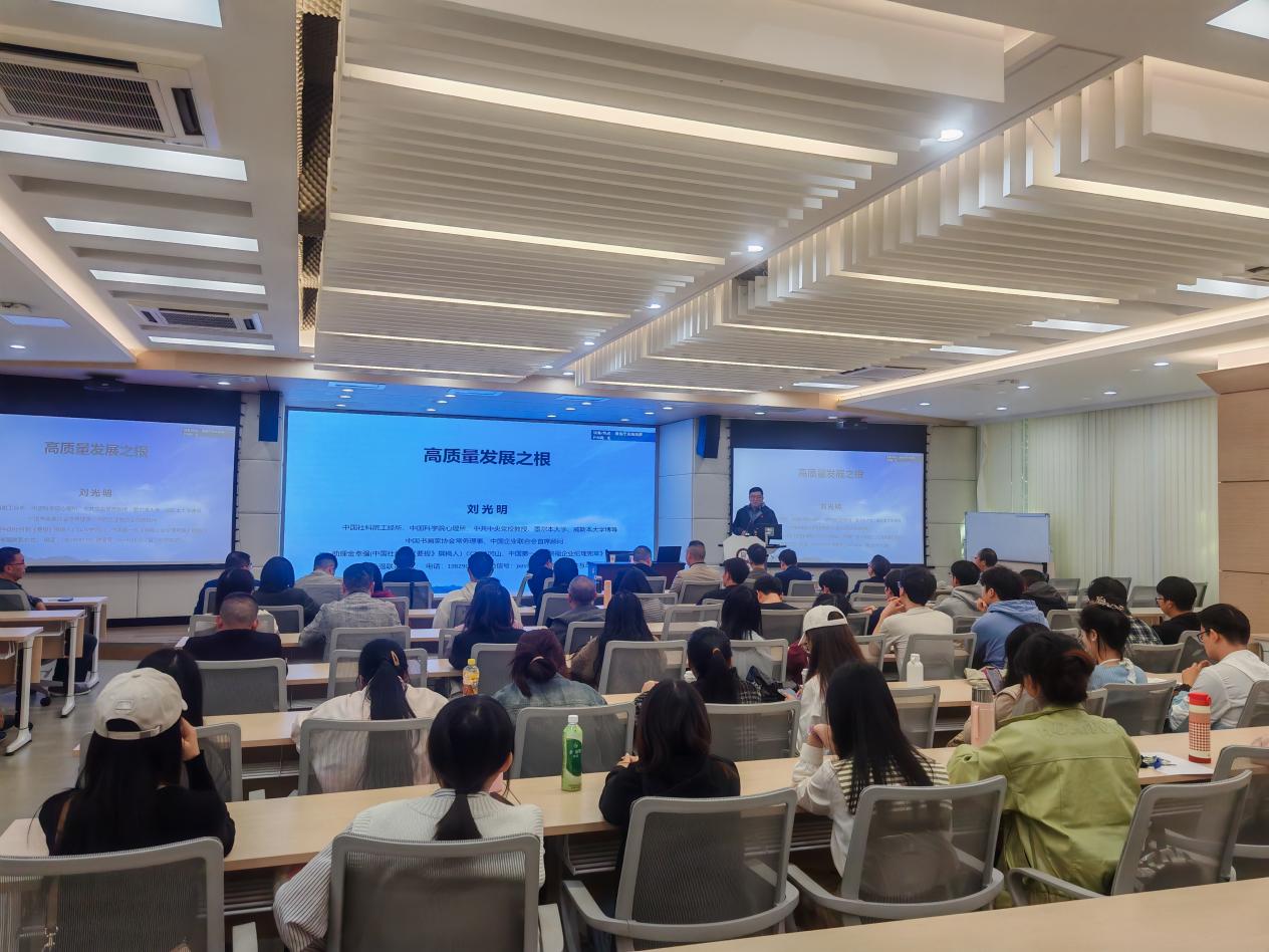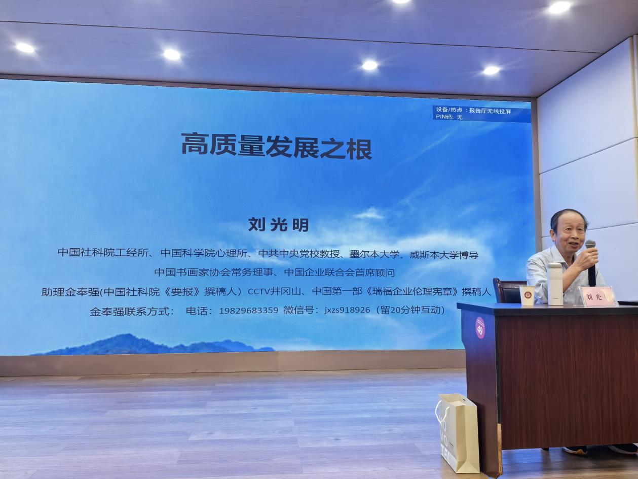世上几百年旧家无非积德,天下第一件好事还是读书。刘光明教授以《高质量发展之根》为主题,阐述高质量发展必要性和发展的基本逻辑,从亚当斯密的《国富论》、马克思的《资本论》讲述读书带来的深远影响,以及举例张静江、洛克菲勒、马斯克、任正非等企业家,因为多读书、善于读书,最终运用于实践,知行合一取得的巨大成功。以深入浅出的方式,将读书和美好生活及事业成功做了阐释,以此鼓励学员多读书、读好书。会后,刘教授与参会人员进行互动交流,为学答疑解惑。