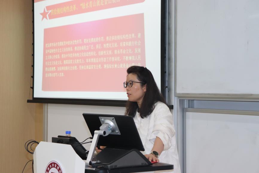 2024年10月23日晚,管理学院于致远楼102教室开展主题为“学新党章,做新时代合格党员”的党课,此次课程由管理学院党委副书记邓琳主讲。