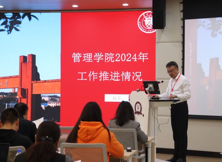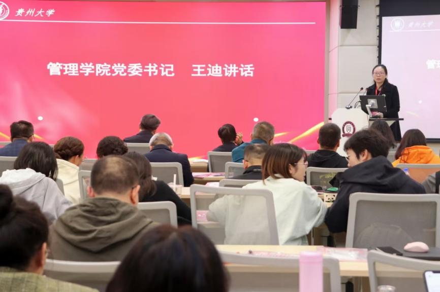 院党委书记王迪作总结讲话,她对全体教职工的辛勤付出致以崇高敬意。她指出,过去一年,学校将高质量发展作为核心任务,管理学院在多个领域交出了亮眼的成绩。她希望我们要继续秉持初心,勇担使命,为贵州大学高质量发展添砖加瓦。