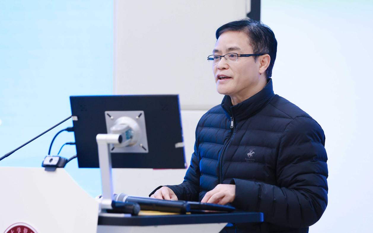 仪式第二项,管理学院副院长李本光教授致辞,首先对MBA的发展历程及招生情况作了简要说明,然后对企业家成长营的愿景与使命进行了深入阐述,强调企业家精神是推动经济社会发展的重要动力源泉。在全力以赴围绕“四新”抓“四化”,奋力谱写新时代贵州高质量发展新篇章的道路上,我们深刻认识到,培育具有家国情怀、国际视野和创新精神的企业家,是时代的召唤,更是我们管理学院的责任和使命。最后李院长提出两点期望。一是不忘初心、牢记使命,做好新时代的传承者。二是认真学习,提升内功,改革创新,做好新时代的引领者。
