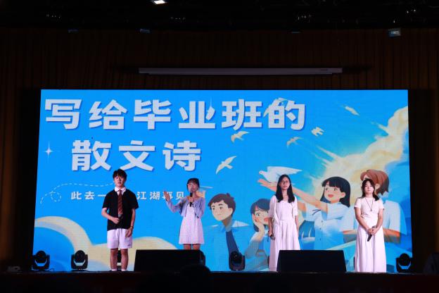 在光影戏《岁月无声,青春有痕》中,蒋礼谣、魏彤等同学以独特的形式回溯了四载光阴;陈小丫、张廷兰等同学的朗诵《写给毕业班的散文诗》,字字句句都戳中了毕业生的心声;教师合唱《没有共产党就没有新中国》,传递出坚定的信仰力量。