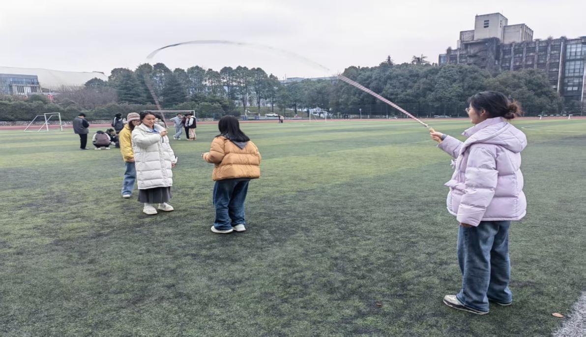 在每天“阳光体育1小时”的时间段里,管理学院的师生们以饱满的热情开启校园跑,围绕东校区田径场完成3圈跑步任务。跑步结束后,健身教练带领全体人员进行柔韧拉伸,确保运动安全。校园跑完成后,同学们可选择多元形式的自由活动,如跳大绳、球类运动等,以此锻炼健康体魄,迎接学习与生活的挑战。