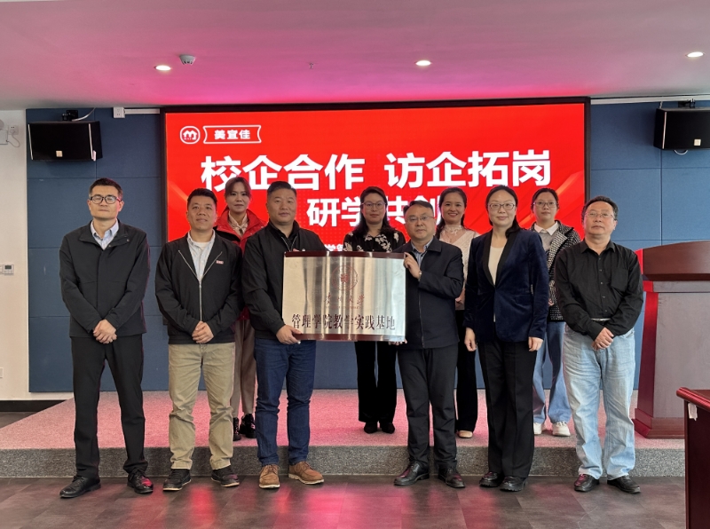 2025年4月28日上午,管理学院党委书记王迪、院长李烨等一行,到贵州美宜佳商贸有限公司开展访企拓岗。双方围绕毕业生就业、企业数字化转型及校企合作等进行了深入交流,并挂牌学院教学实践基地。