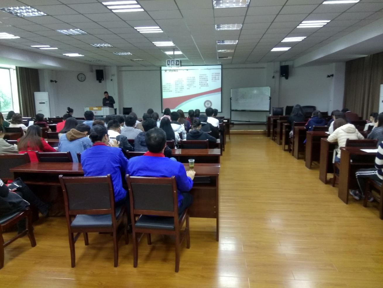 然后由2017级3名MBA学员代表依次上台分享了考研成功的经验并为未来的学弟、学妹们加油打气!
