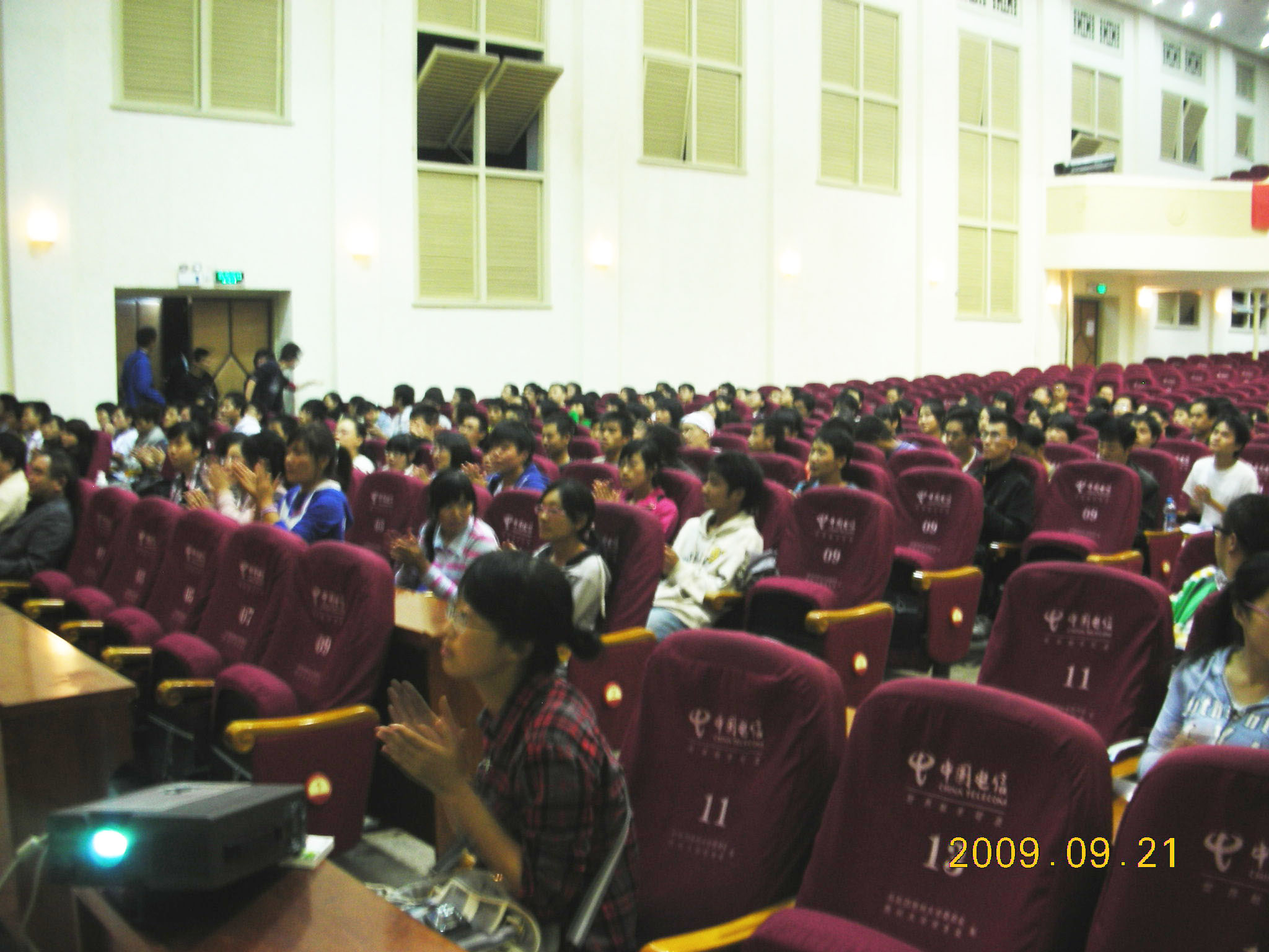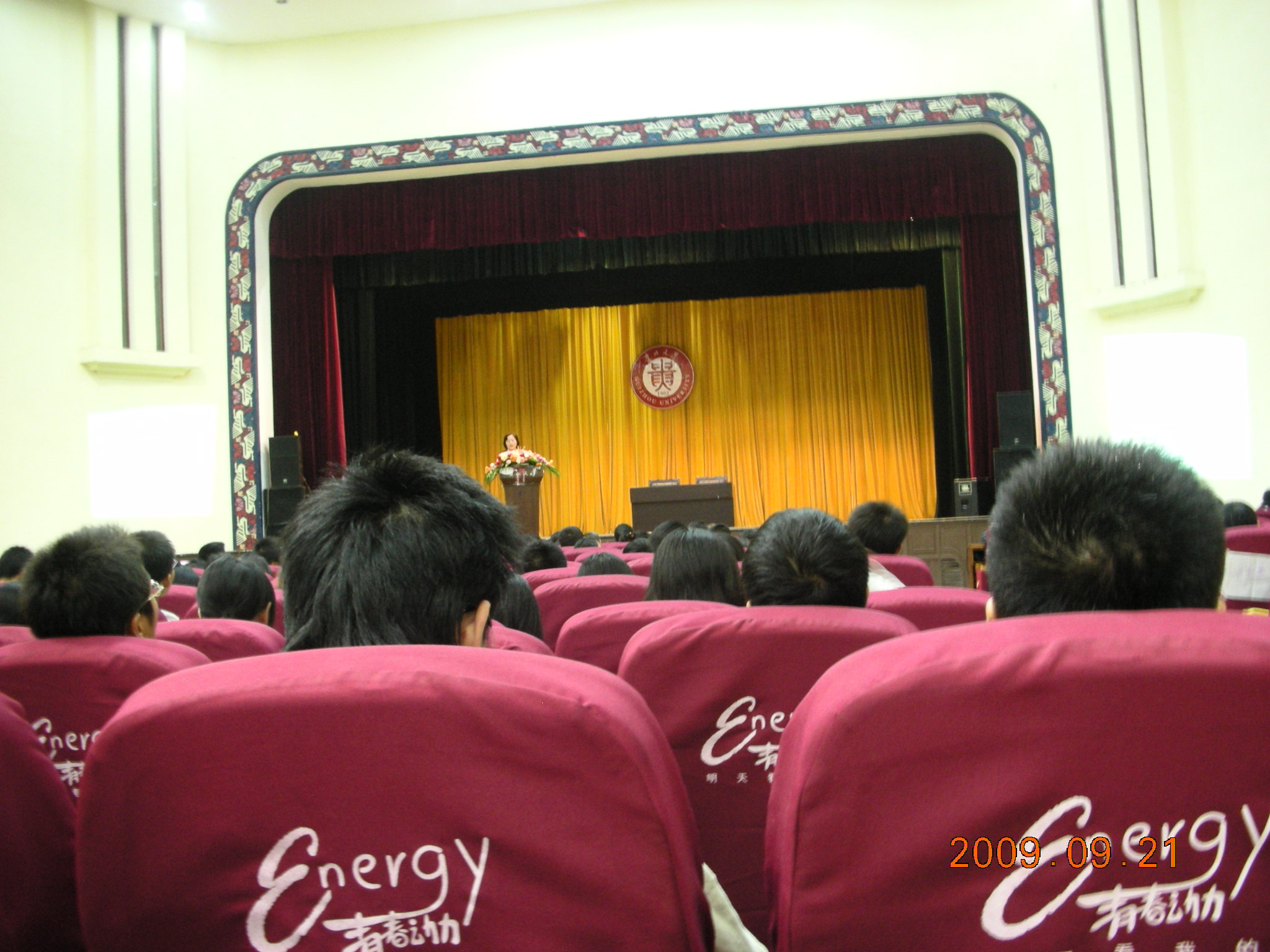 在招生就业处和管理学院共同邀请下,2009年9月21日晚上,0803班MBA学员、中国人力资源开发研究会VIP代表会员、高级人力资源管理师、北京华悦成长管理咨询公司董事长李冰女士在北区大礼堂为全校本科生作了一场生动的职业生涯规划讲座。