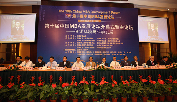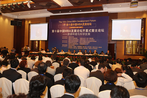 本次论坛以“资源环境与科学发展”为主题,代表们还围绕管理与创新、MBA职业发展与教育创新、企业与发展等主题展开交流,并举行2009年度中国MBA十大精英人物颁奖典礼。