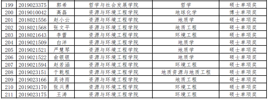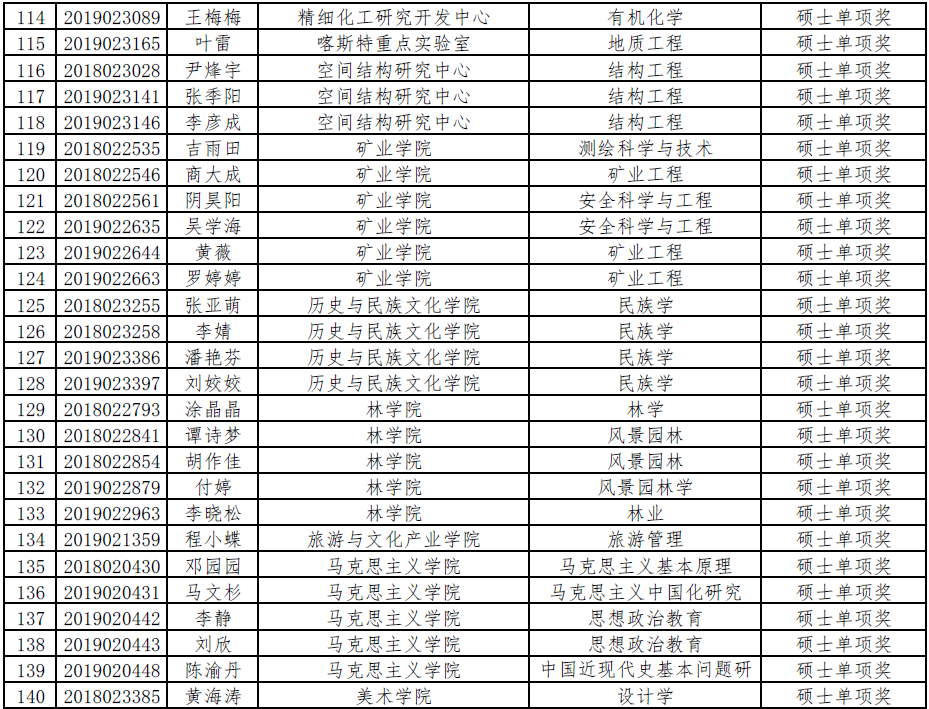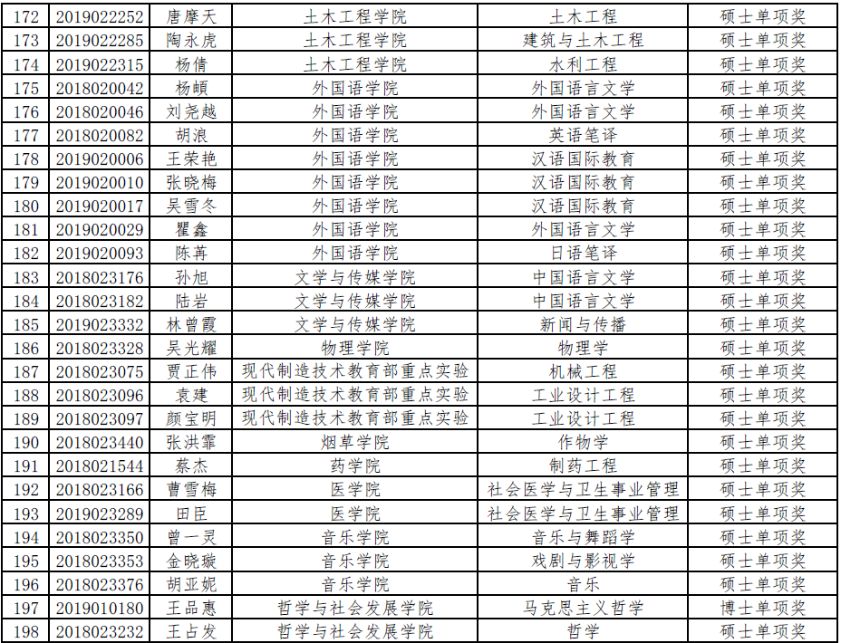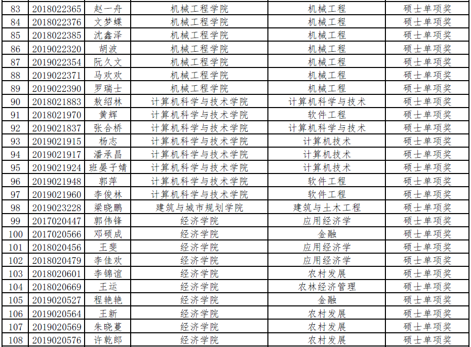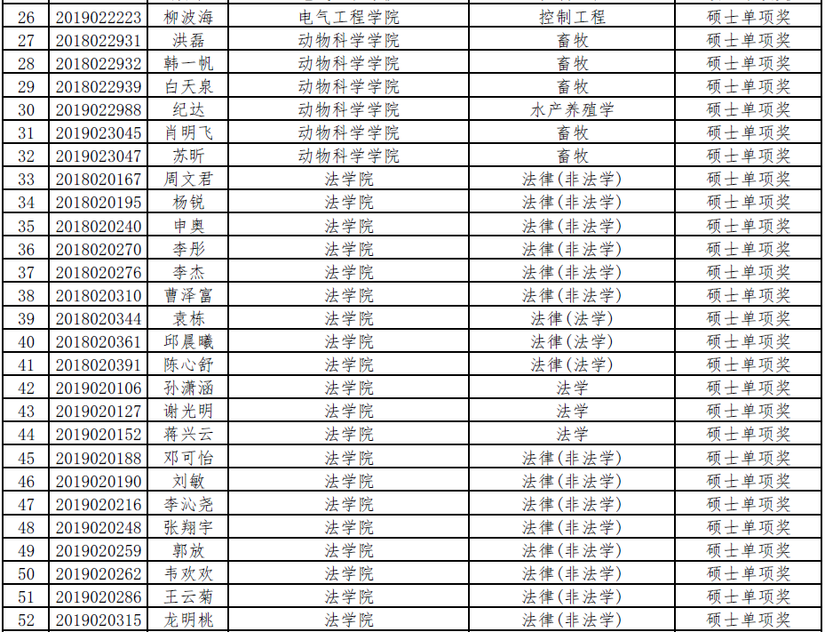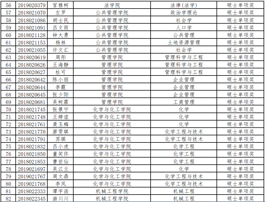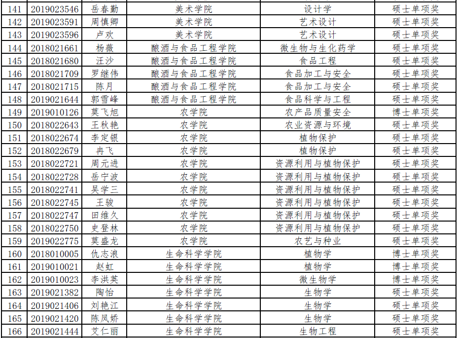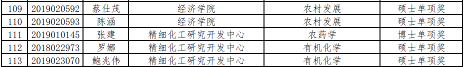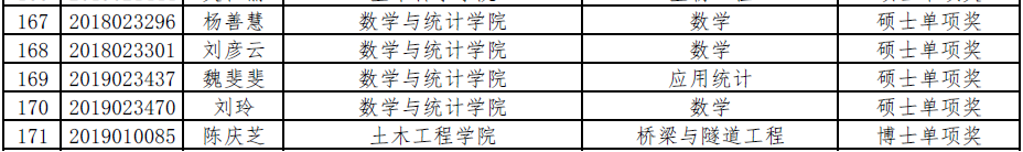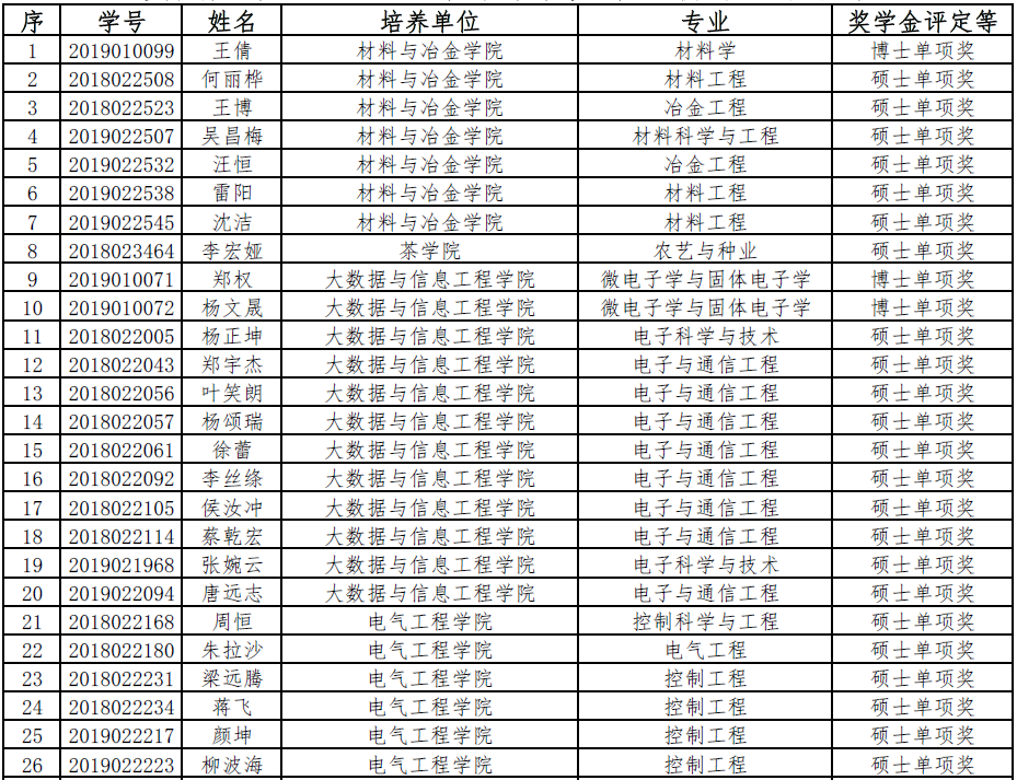 贵州大学2019-2020学年单项奖学金初评公示名单
