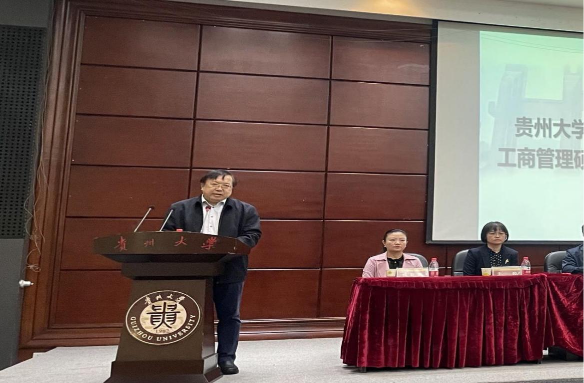 紧接着,管理学院MBA导师代表许为宾发言。他对同学今后的三年学习提出三点期望,一是将理论与实践相结合;二是重新塑造人格,突破自己的人格限制;三是将所学的知识服务贵州经济。