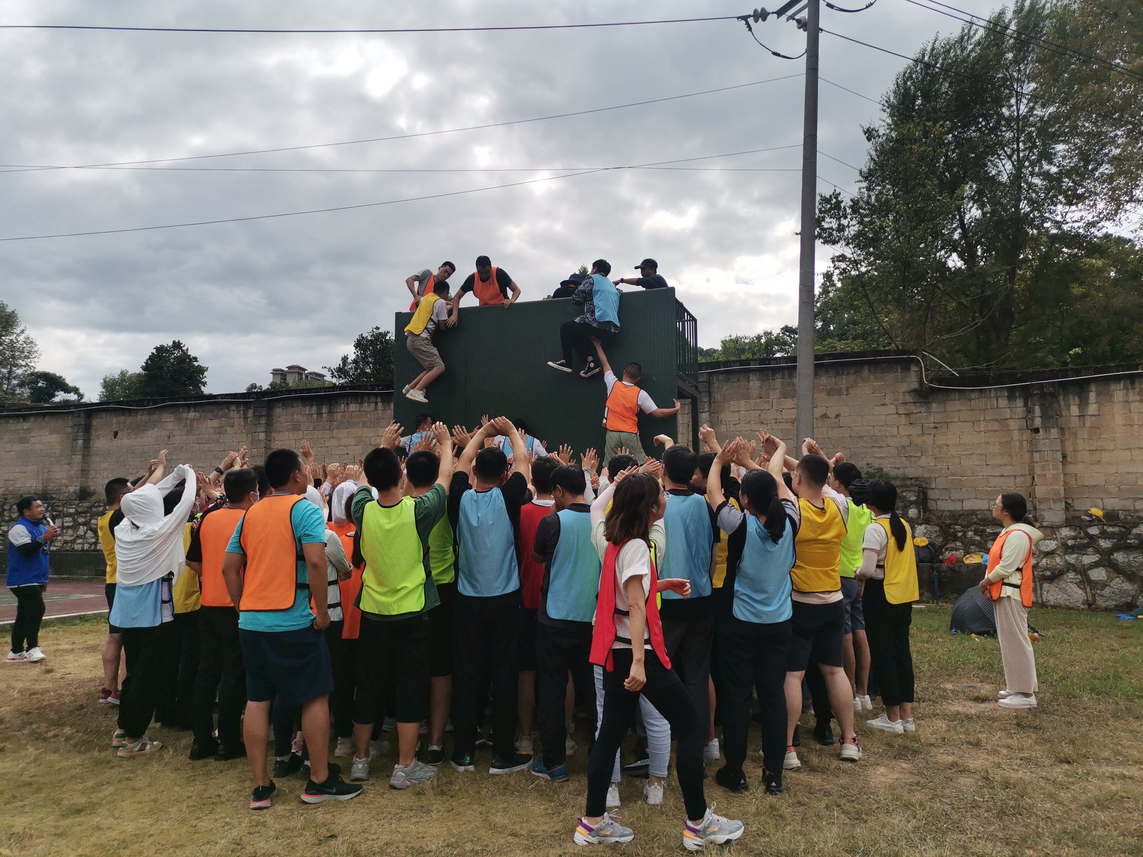 早上740分,学生们从学校东校区整队出发,先徒步到花溪栖碧山庄训练基地随之进行了开营破冰、挑战180、冰海沉船、汉诺塔、急速六十秒、毕业墙等一系列或欢快或具有挑战性的项目
