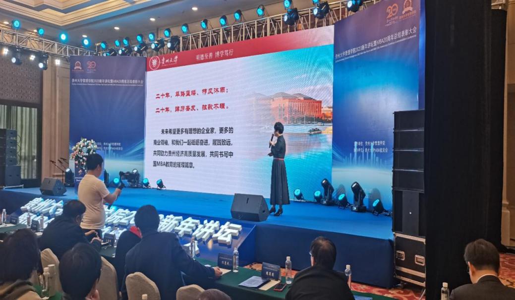 第二阶段:“二十载风雨兼程初心不改,再创辉煌谱新篇矢志不渝”乐动官方网站MBA20周年总结表彰大会 贵州大学党委正处级组织员、管理学院党委副书记(主持党委工作)周莉莉教授做MBA20年发展报告,周书记详细介绍了乐动官方网站MBA项目20年来的发展历程、培养模式以及取得的辉煌成就。她说:乐动官方网站MBA将激昂展望未来发展,不忘过去二十年筚路蓝缕,砥砺奋进,履践致远,共同助力贵州经济高质量发展,共同书写新时代中国MBA教育的璀璨篇章。