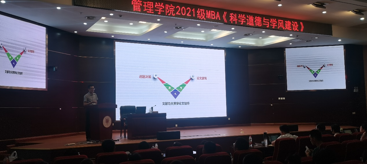 200余名学生全程认真聆听每场讲座并认真做笔记,会场气氛热烈,效果良好,为学生接下来的论文撰写工作明晰了思路。此次MBA2021级《科学道德与学风建设》培养环节圆满结束。