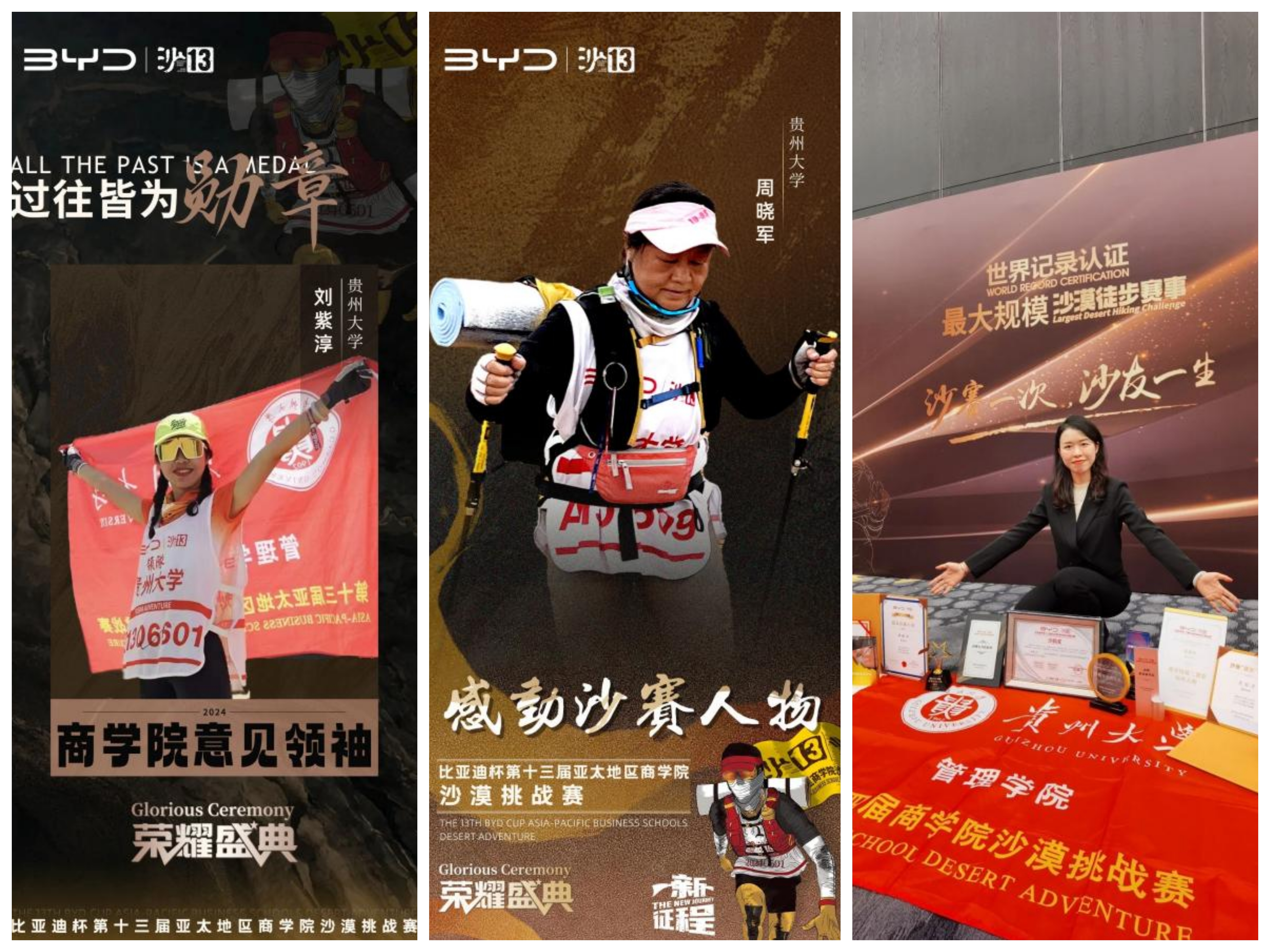 近日,乐动官方网站MBA沙13领队刘紫淳、沙14领队谢明珠,赴南京代表学校参加了比亚迪杯第十三届亚太地区商学院沙漠挑战赛(简称“沙13”)颁奖典礼暨沙14启动仪式。在这场盛会中,贵州大学沙13战队凭借卓越表现,赢得了多项殊荣。