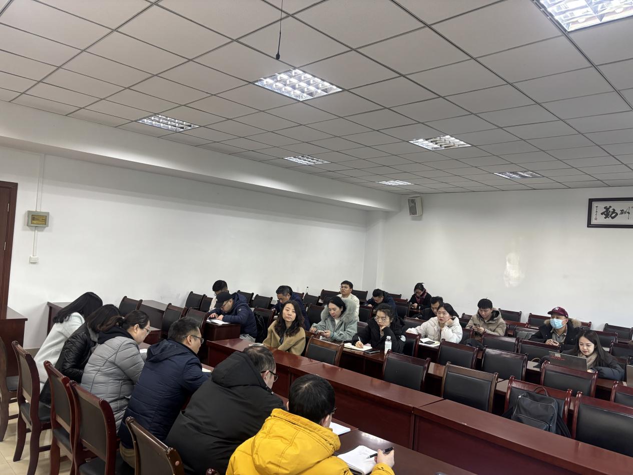 会议开始,何主任向大家介绍了MBA教育中心各老师的职责和分管情况,通报各年级下学期的工作计划与教学安排,并重点对22级盲评及毕业答辩、23级论文开题及答辩、24级选修课安排及论文写作方向等事项进行了详细讲解。