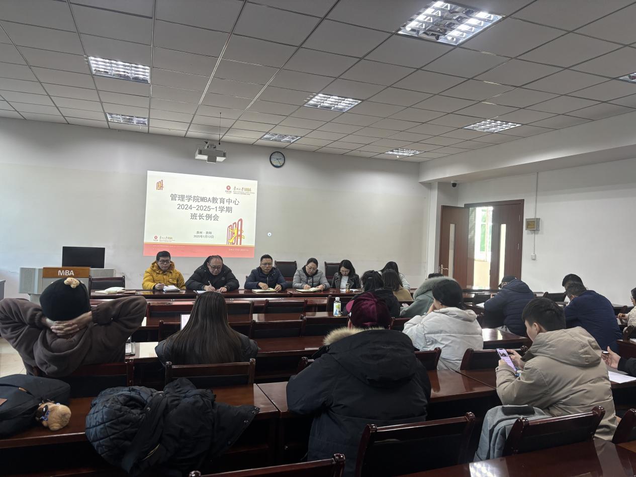 2025年1月12日,乐动官方网站MBA教育中心在203教室举行了2024-2025第一学期班长例会,会议由MBA教育中心常务副主任何跃勇主持,中心办公室主任芮丽华、中心江滔、凌聪、缪春华、欧璐、李巧玲以及2022级、2023级、2024级各班班长、副班长、学习委员等共计30余人参加。
